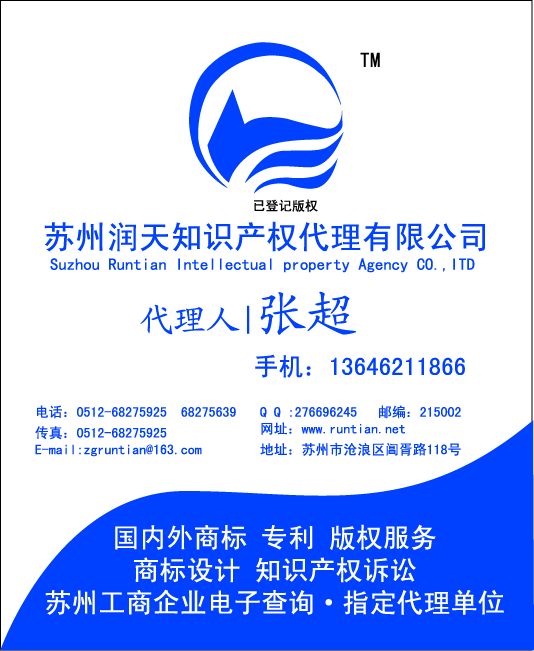 蘇州潤天知識產(chǎn)權(quán)代理有限公司0512-68275925/北京潤川知識產(chǎn)權(quán)代理有限公司是國家商標(biāo)局在蘇州地區(qū)/北京地區(qū)專業(yè)從事商標(biāo)注冊申請、續(xù)展、轉(zhuǎn)讓、商標(biāo)監(jiān)測、知識產(chǎn)權(quán)訴訟、蘇州軟件著作權(quán)登記\蘇州版權(quán)登記代理等知識產(chǎn)權(quán)服務(wù)的專門機(jī)構(gòu)。條形碼登記代理|蘇州商標(biāo)注冊|蘇州商標(biāo)|知識產(chǎn)權(quán)訴訟代理|蘇州商標(biāo)注冊公司|吳江商標(biāo)注冊公司|太倉商標(biāo)注冊|太倉商標(biāo)注冊申請|太倉商標(biāo)注冊公司|昆山商標(biāo)注冊公司|吳江商標(biāo)注冊公司|商標(biāo)轉(zhuǎn)讓申請|商標(biāo)續(xù)展申請|商標(biāo)設(shè)計|蘇州LOGO設(shè)計|商標(biāo)查詢|商標(biāo)免費查詢|蘇州工業(yè)園區(qū)商標(biāo)注冊|蘇州新區(qū)商標(biāo)注冊。蘇州潤天知識產(chǎn)權(quán)代理有限公司 <蘇州潤天知識產(chǎn)權(quán)代理有限公司 蘇州市吳中區(qū)蘇蠡路63號蠡諧大廈1007 電話:0512-68275925/68275639 傳真:0512-68275925 網(wǎng)址:://WWW.RUNTIAN.NET 法律顧問單位:北京潤川律師事務(wù)所 ://WWW.RUNCHUANLAW.COM |